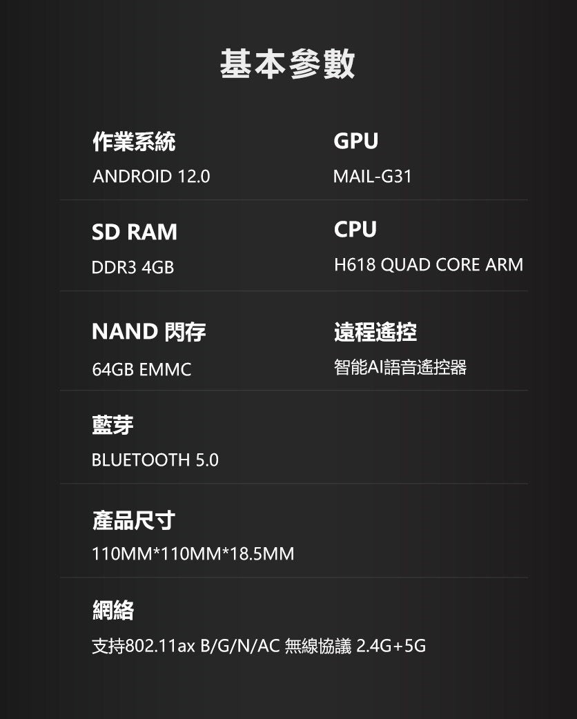 - CPU全面升級,配備最新8核高性能芯片H618處理器,兼容性更強,速度更快,穩定性更佳